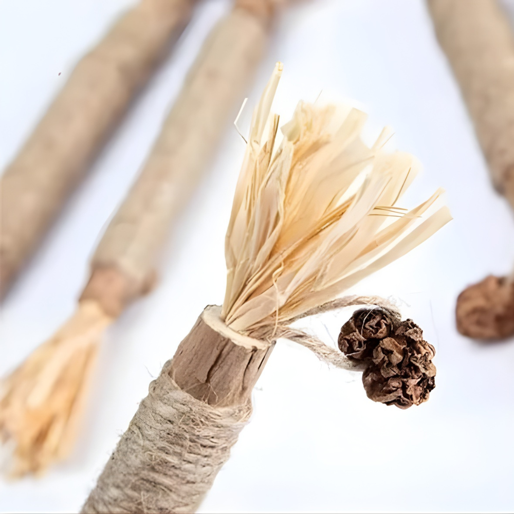 Nuestros palitos dentales de Silvervine están fabricados con madera natural de vid plateada, sin ingredientes artificiales, conservantes ni aditivos. Una experiencia de masticación saludable y segura para tu gato, pensada para su salud y bienestar óptimos.