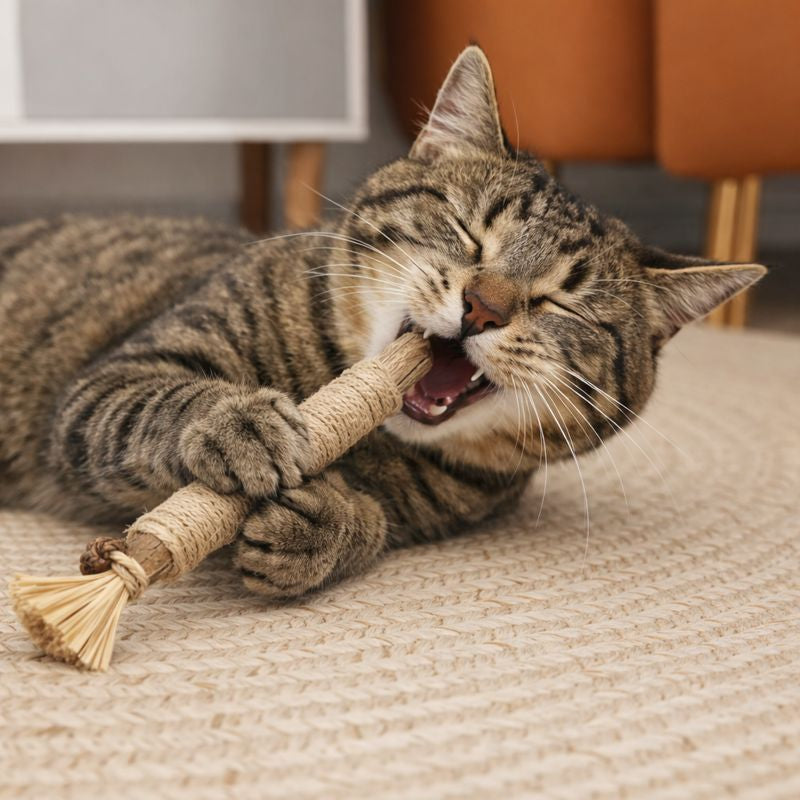 Nuestros palitos de Silvervine ofrecen a los gatos una forma segura de satisfacer su instinto natural de masticar, evitando que ataquen cables, plástico y cualquier objeto que encuentren a su alcance.